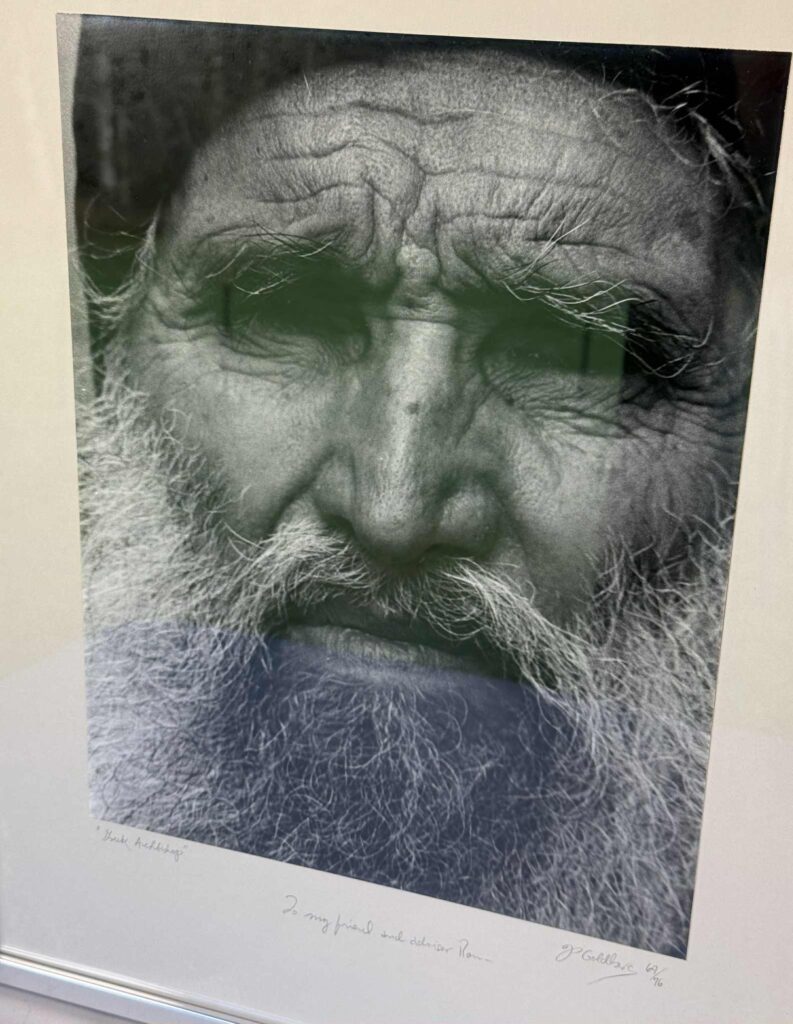 Silver-gelatin print, signed and dated in pencil lower right “J. Goldberg 69/76”, titled “Greek Archbishop” lower left, with dedication “To my friend and adviser Ron –” at center.